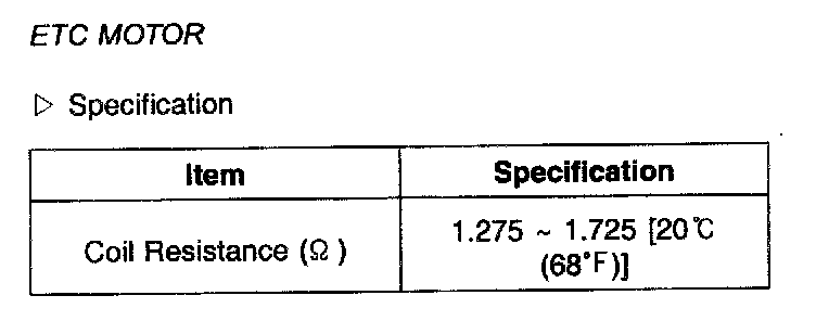 ETC Motor - Specification: