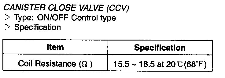 Canister Close Valve(CCV) - Specification: