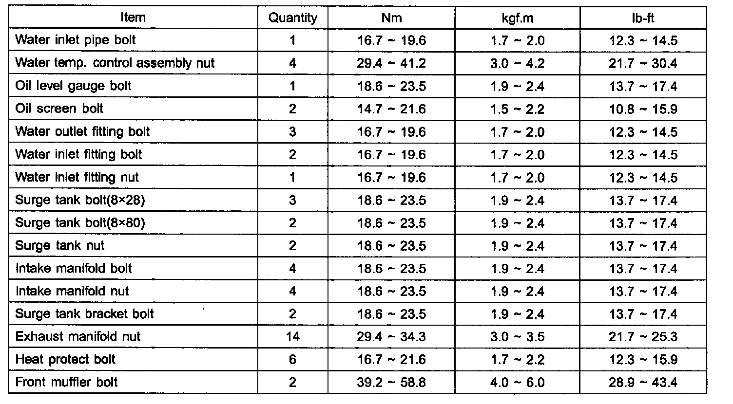 TIGHTENING TORQUE