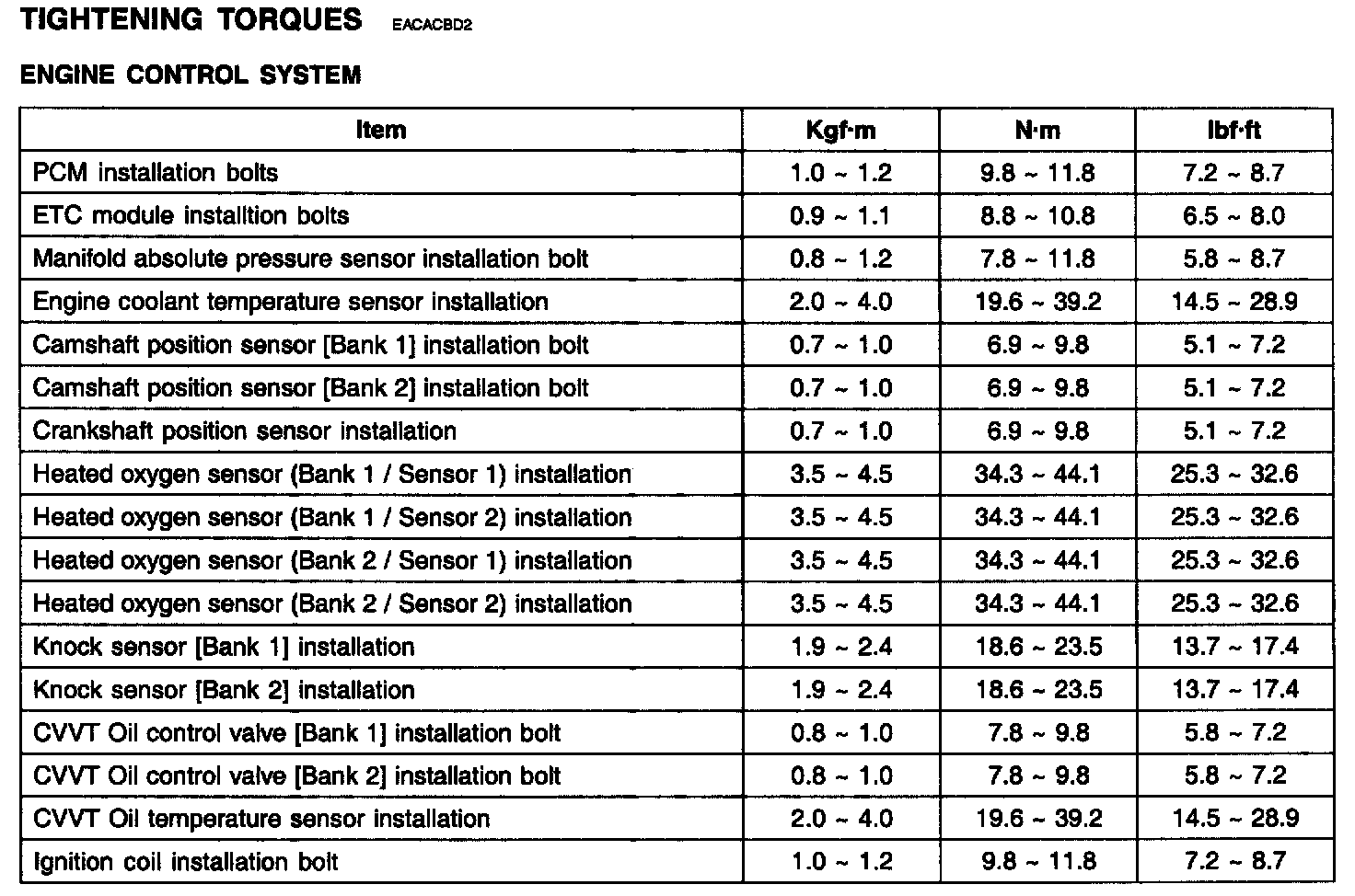 Tightening Torques - Engine Control System: