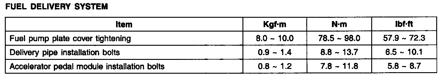 Tightening Torques - Fuel Delivery System: