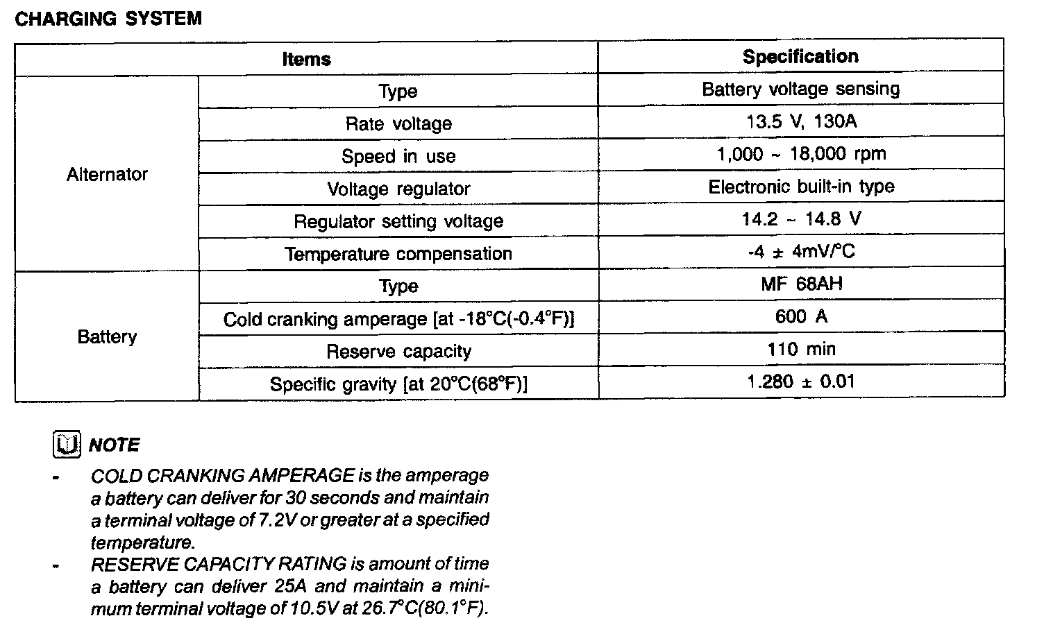 Charging System - Specification: