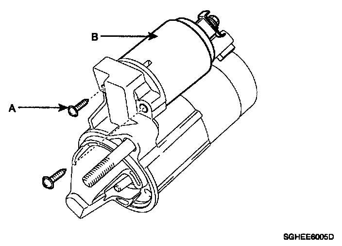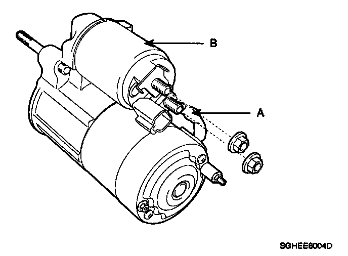 1. Disconnect the M-terminal (A) on the magnet switch assembly (B).