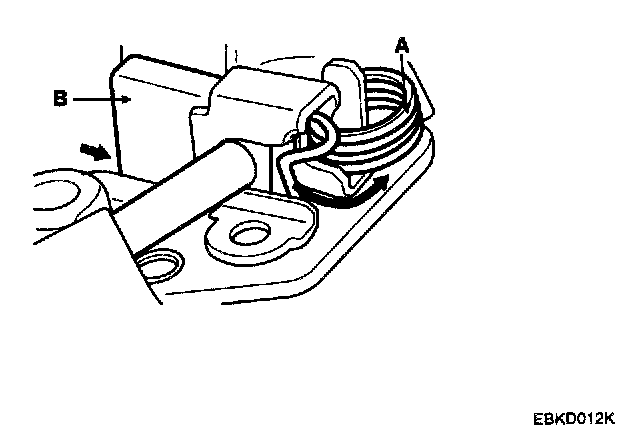 1. Check that mere is no continuity between the (+) brush holder (A) and (-) brush holder (B). If there is no continuity, replace the brush holder assembly.