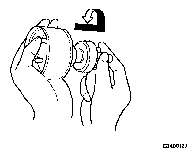 2. Rotate the overrunning clutch both ways. Does it lock in one direction and rotate smoothly in reverse? If it does not lock in either direction of it locks in both directions, replace it.