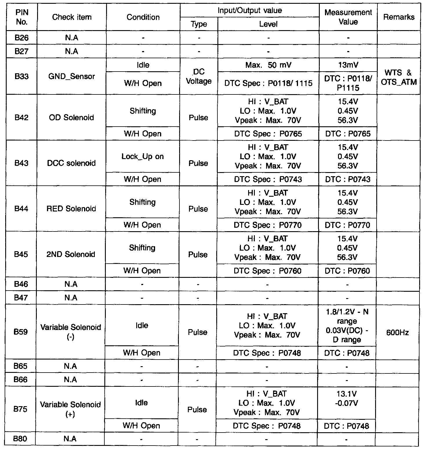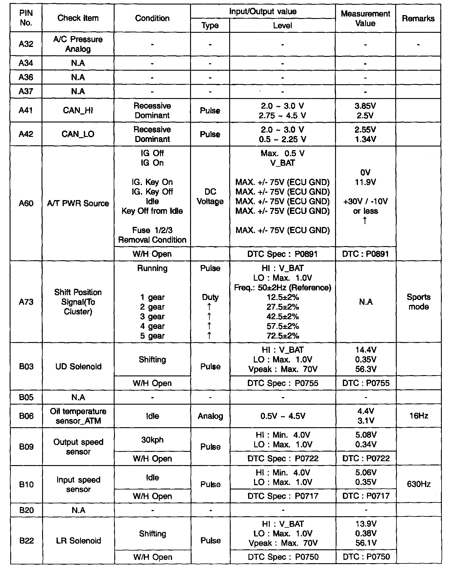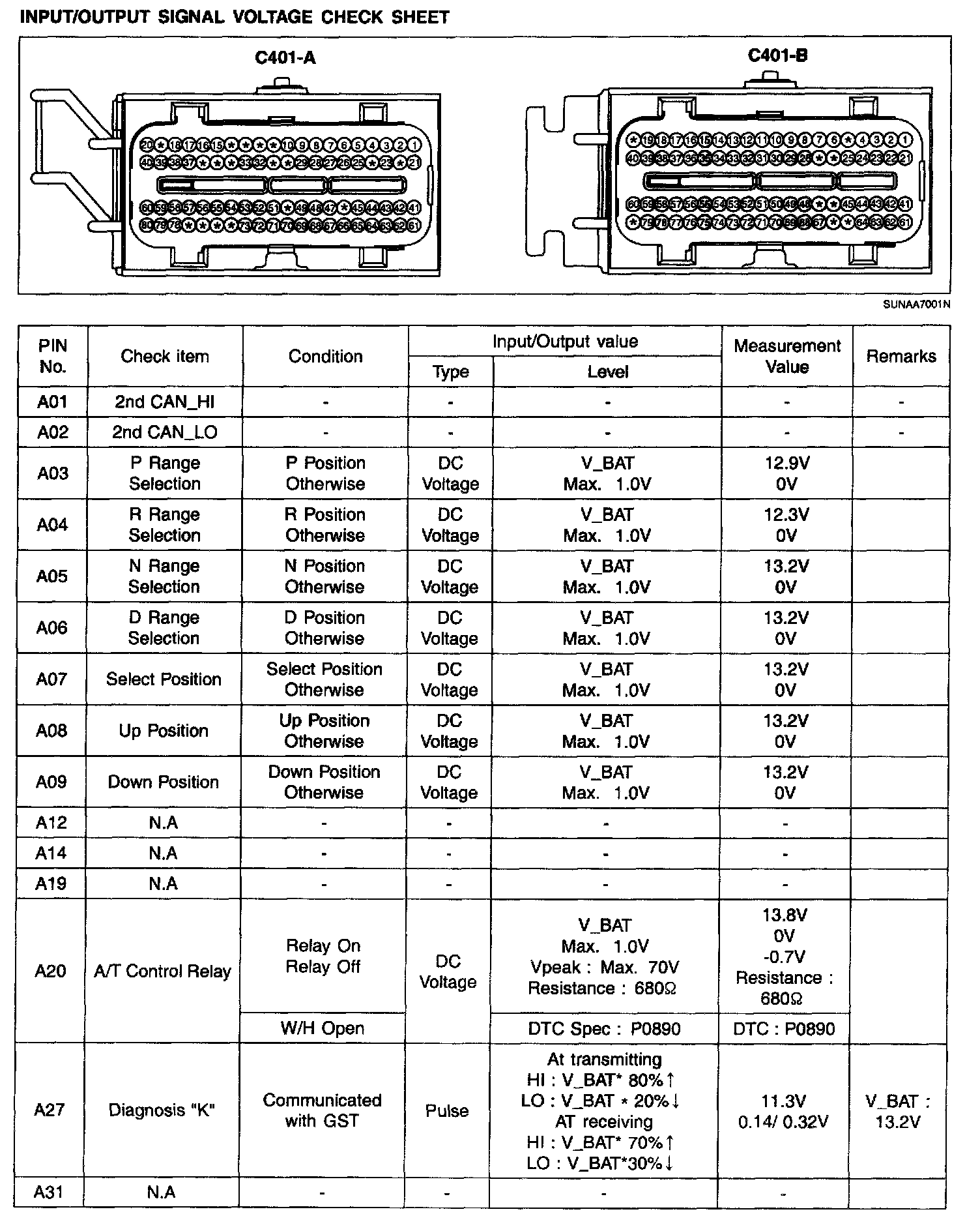 INPUT/OUTPUT SIGNAL VOLTAGE CHECK SHEET
