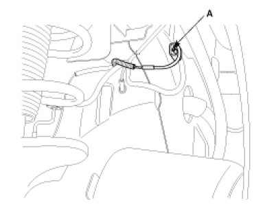 4. Remove the front wheel speed sensor after disconnecting the wheel speed sensor connector (A).