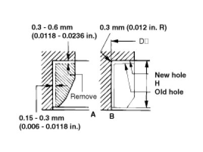2. Enlarge the seat ring hole of cylinder head so that matches the specified cylinder head hole inner diameter of new valve seat ring.
