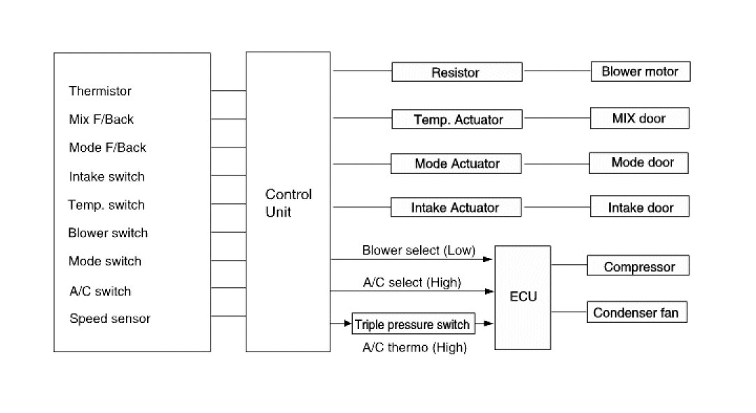 (2) With Defroster or MIX in the blower ON mode, It controls with A/C ON and the fresh mode.