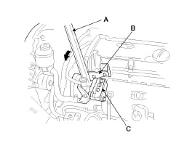 (2) Put a bar(A) or equivalent, between the bracket(B) and the oil pump(C) and adjust the tension so that the belt deflection is within the standard value.