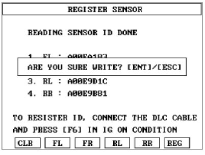 2. Read the four sensor's ids starting with sensor 1 (1 normally front left, 2 front right, 3 rear left, 4 rear right).