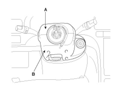 7. After removing three bolts(A) in the illustration, remove the multifunction switch assembly(B).