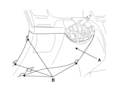 8. Remove the lower crash pad(A) after loosening the four bolts(B) in the illustration.