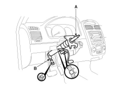 9. Remove the five bolts connecting the steering column shaft(A) and the universal joint(B) as shown in the illustration.