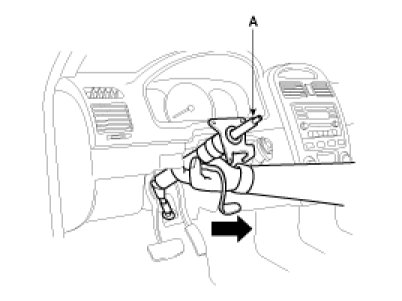 10. After removing the mounting bolts and nuts, remove the steering column and shaft assembly(A).