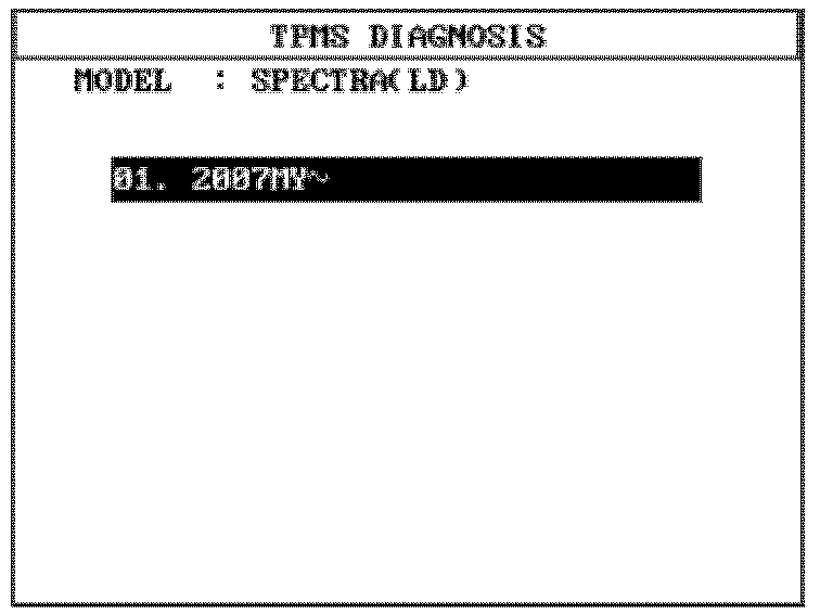 1. After selecting "01. TPMS DIAGNOSIS" from the Initial Screen, select the desired vehicle and press ENTER.
