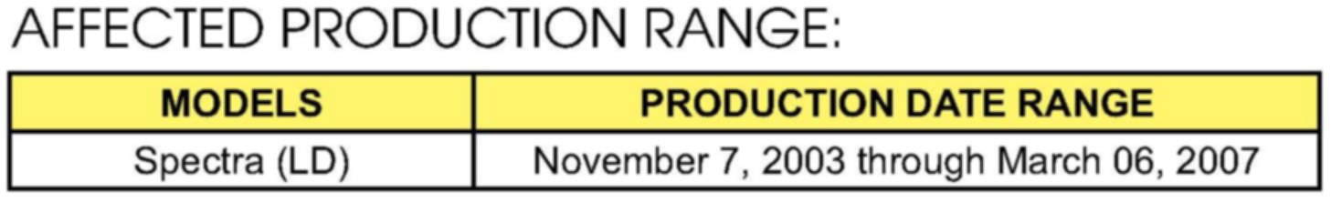 There is no charge to the vehicle owner for this repair. Under applicable law, you may not sell or otherwise deliver any affected Spectra (LD) until it has been repaired pursuant to the procedures set forth in this bulletin.