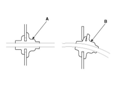 6. Seat grommets in their grooves properly (A). Do not leave grommets distorted (B).
