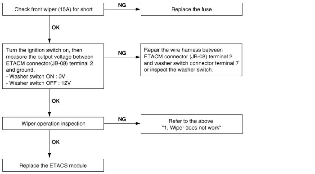 When washer switch is on, wiper does not work.