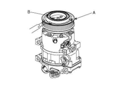 3. Measure the clearance between the pulley (B) and the disc & hub assembly (A) all the way around. If the clearance is not within specified limits, remove the disc & hub assembly and add or remove shim (gap washer) as needed to increase or decrease clearance.Clearance: 0.45 ± 0.1mm (0.018 ± 0.004 in.)