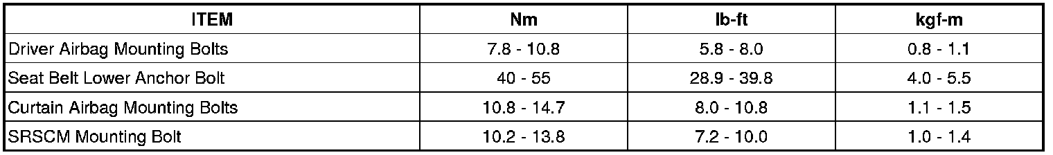 TIGHTENING TORQUES