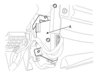 3. Remove the keyless antenna cable and body control module (A) after loosening 2 nuts.