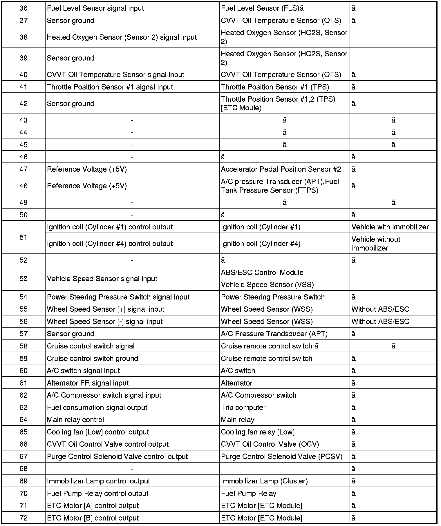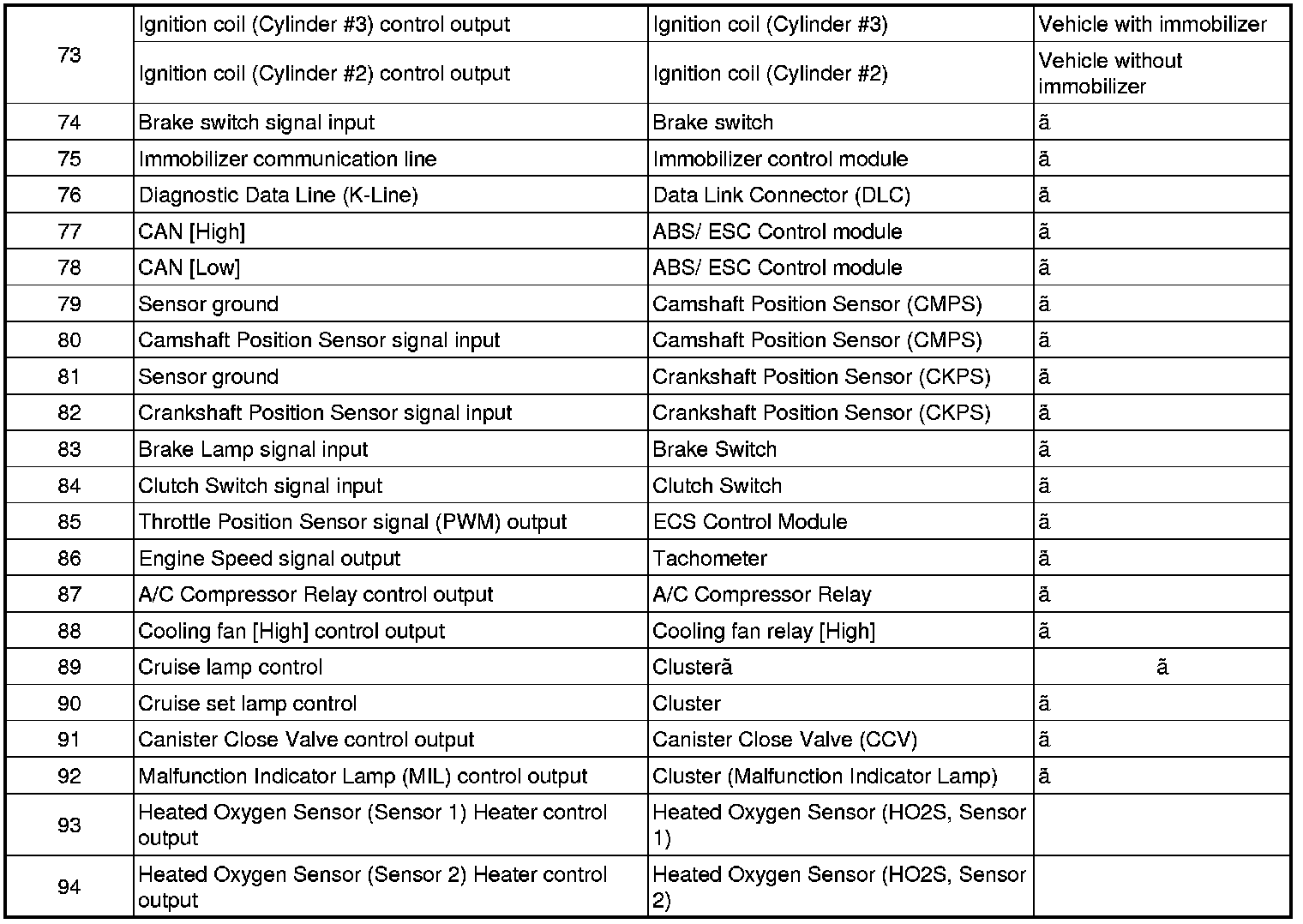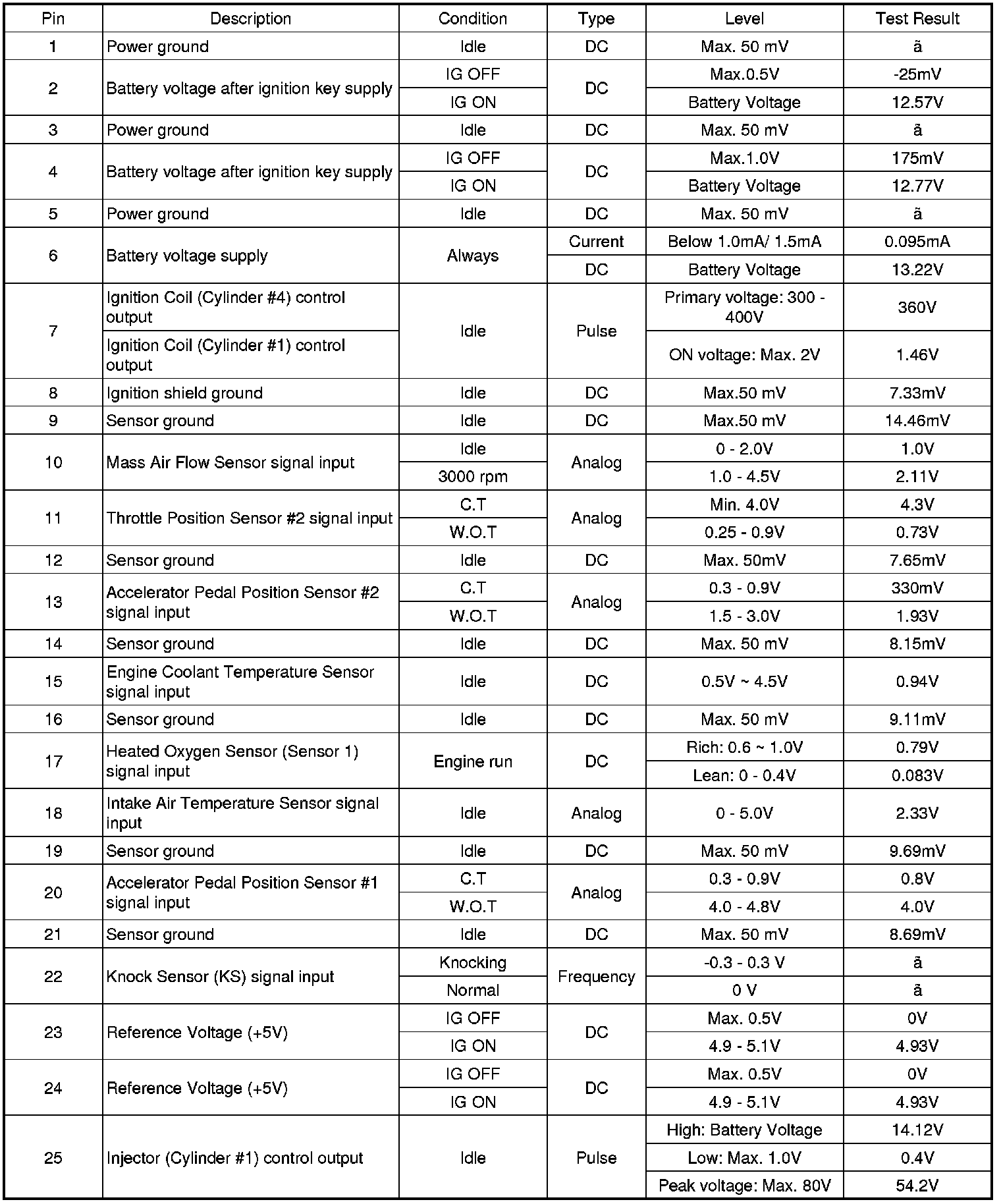 ECM TERMINAL INPUT/OUTPUT SIGNAL