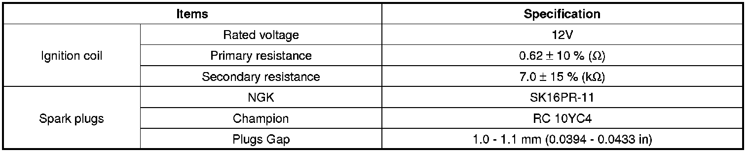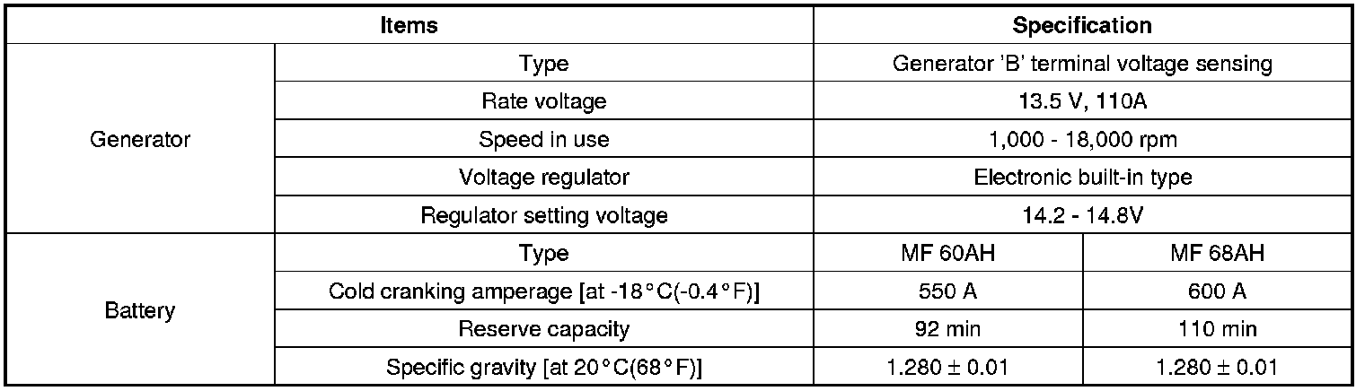 Starting and Charging: Specifications