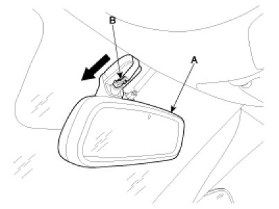 1. Push the inside rear view mirror base (A) down to remove to inside rear view mirror assembly (B).