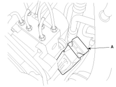 4. Loosen the 2 ABS HECU bracket bolts (A), then remove HECU and bracket.
