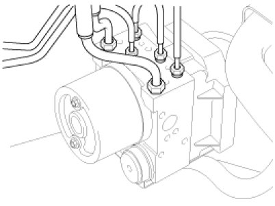 3. Disconnect the brake tubes from the HECU by unlocking the nuts counterclockwise with a spanner.