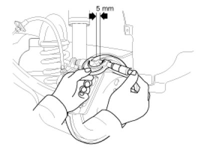 Rear brake disc thicknessStandard value : 10.0 mm ( 0.39 in) / Limit : 8.4 mm (0.33 in)Thickness variation should not exceed 0.01mm (0.0004 in) (circumference) and 0.01mm (0.0004 in) (radius) at any directions.