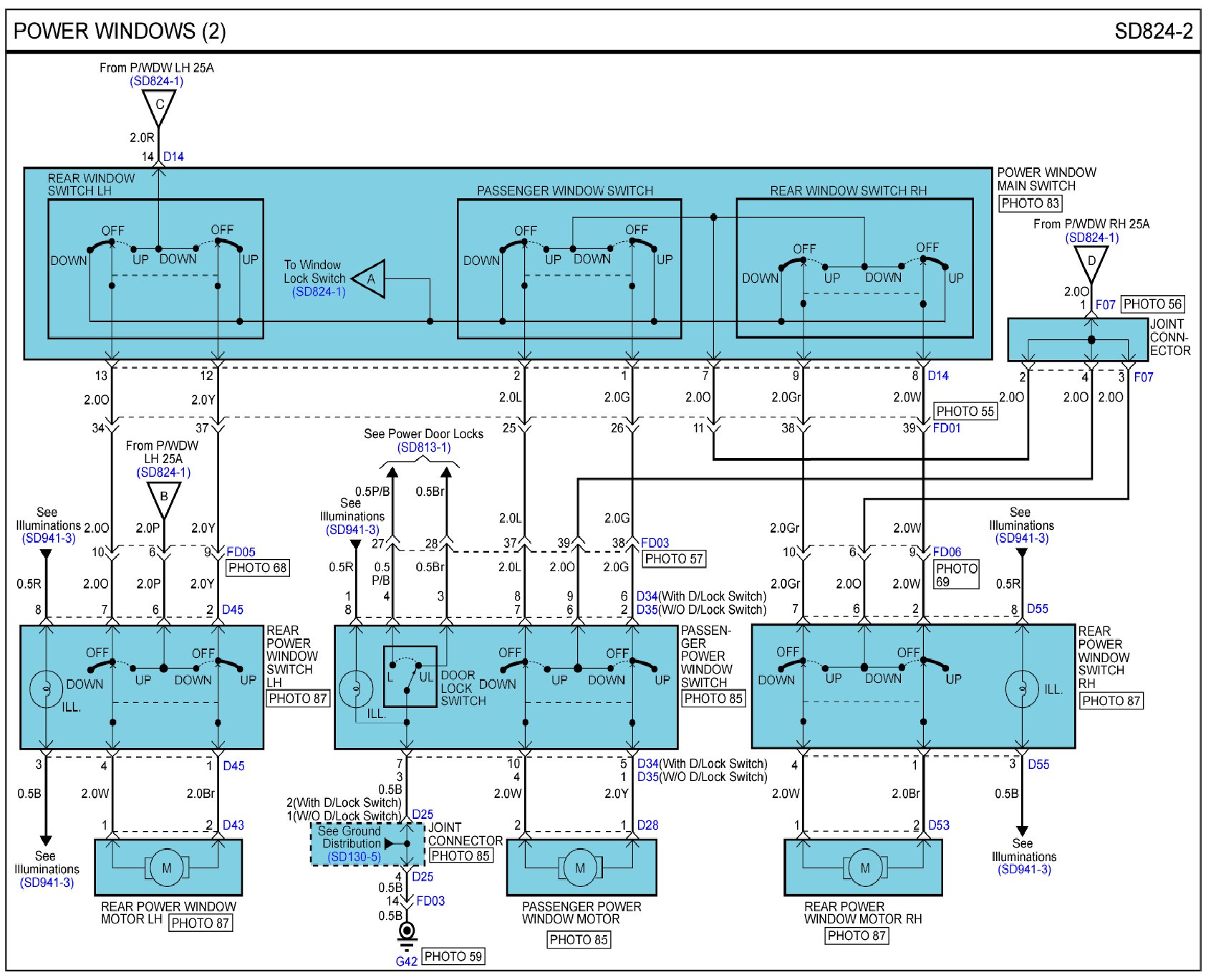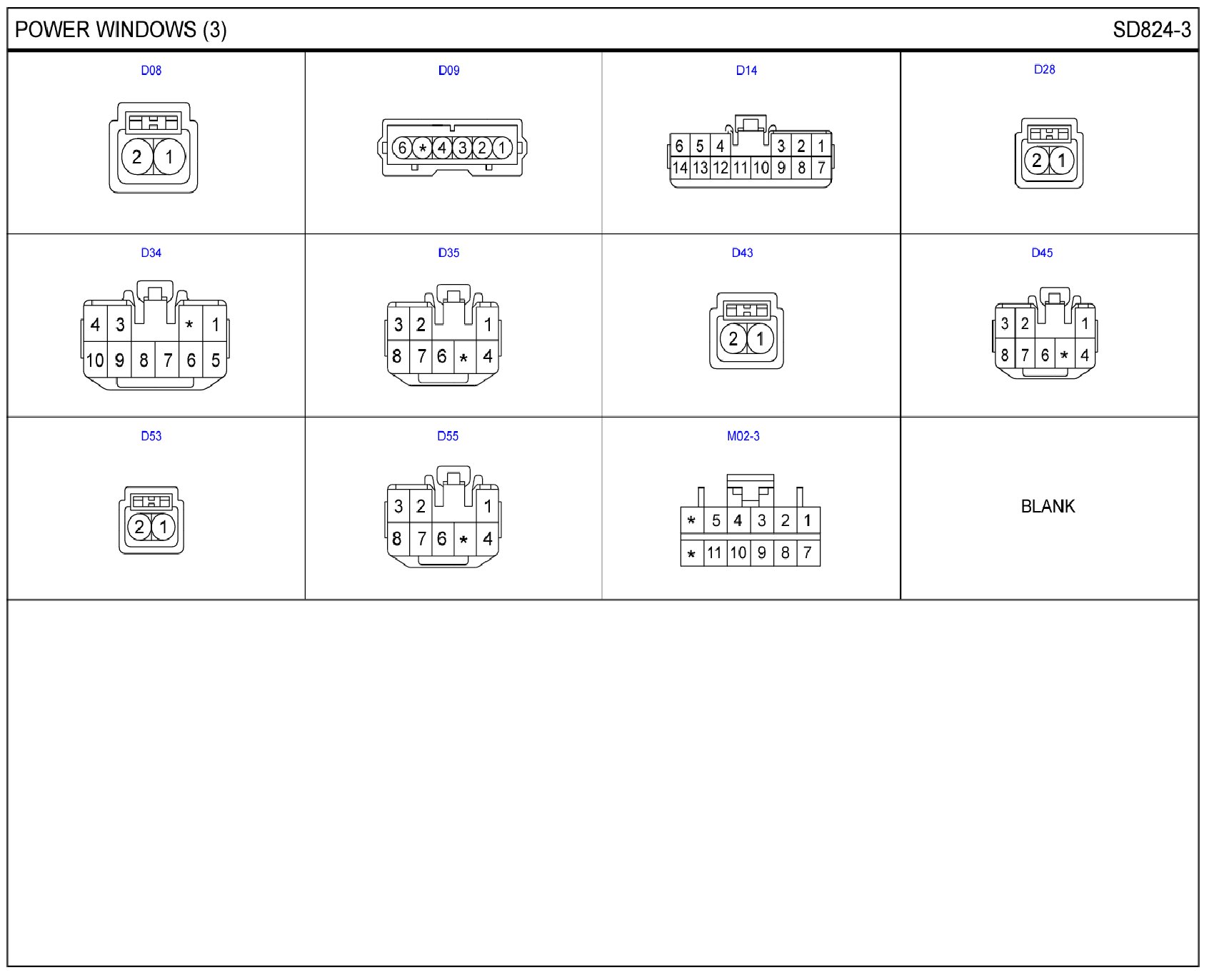 Power Windows Connector Pin Outs:
