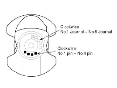 1. When reinstalling, make sure that cylinder numbers put on the connecting rod and cap at disassembly match. When a new connecting rod is installed, make sure that the notches for holding the bearing in place are on the same side.