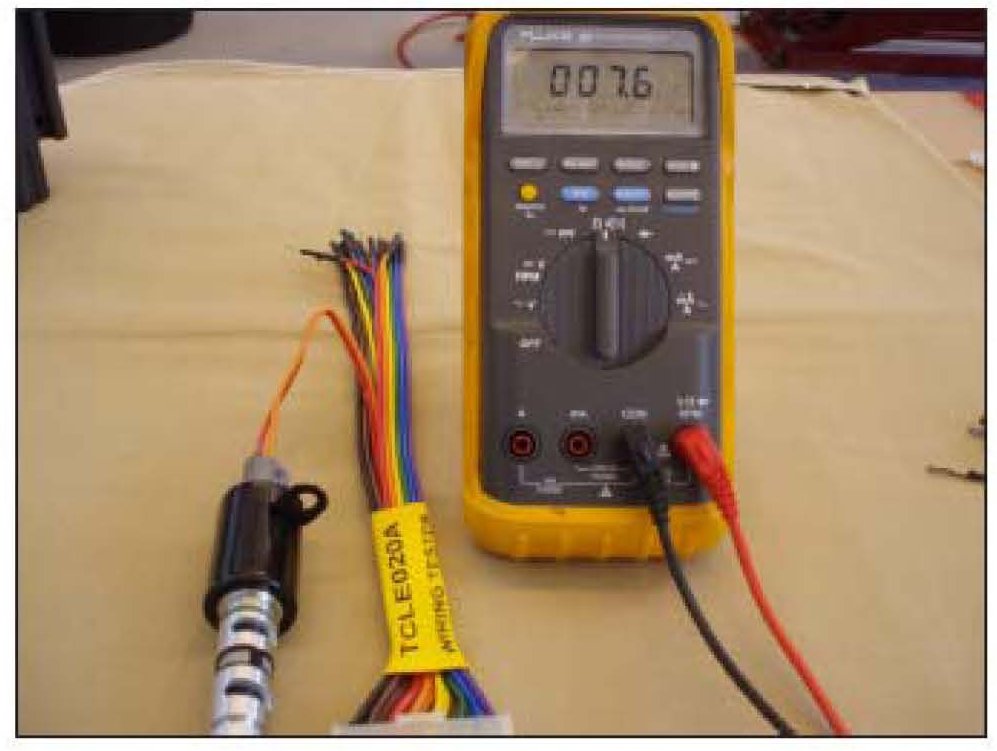 2. Check if the OCV operates normally by providing 12V power supply as shown. Do not apply voltage for longer than 5 seconds at a time; Do not overheat OCV windings.