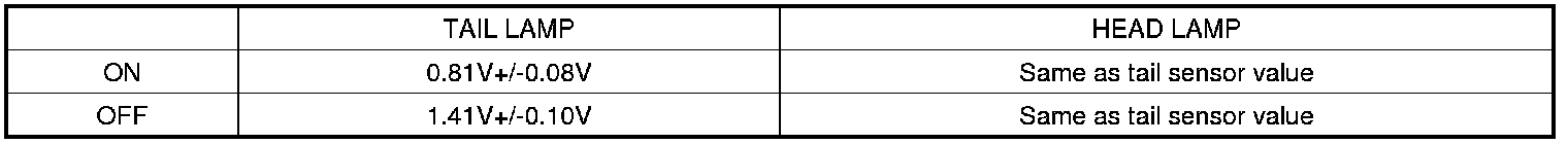 (12) The condition of head lamp ON/OFF is same as the one of tail lamp ON/OFF at auto light switch ON. Light ON value of the input sensor is based on the table.