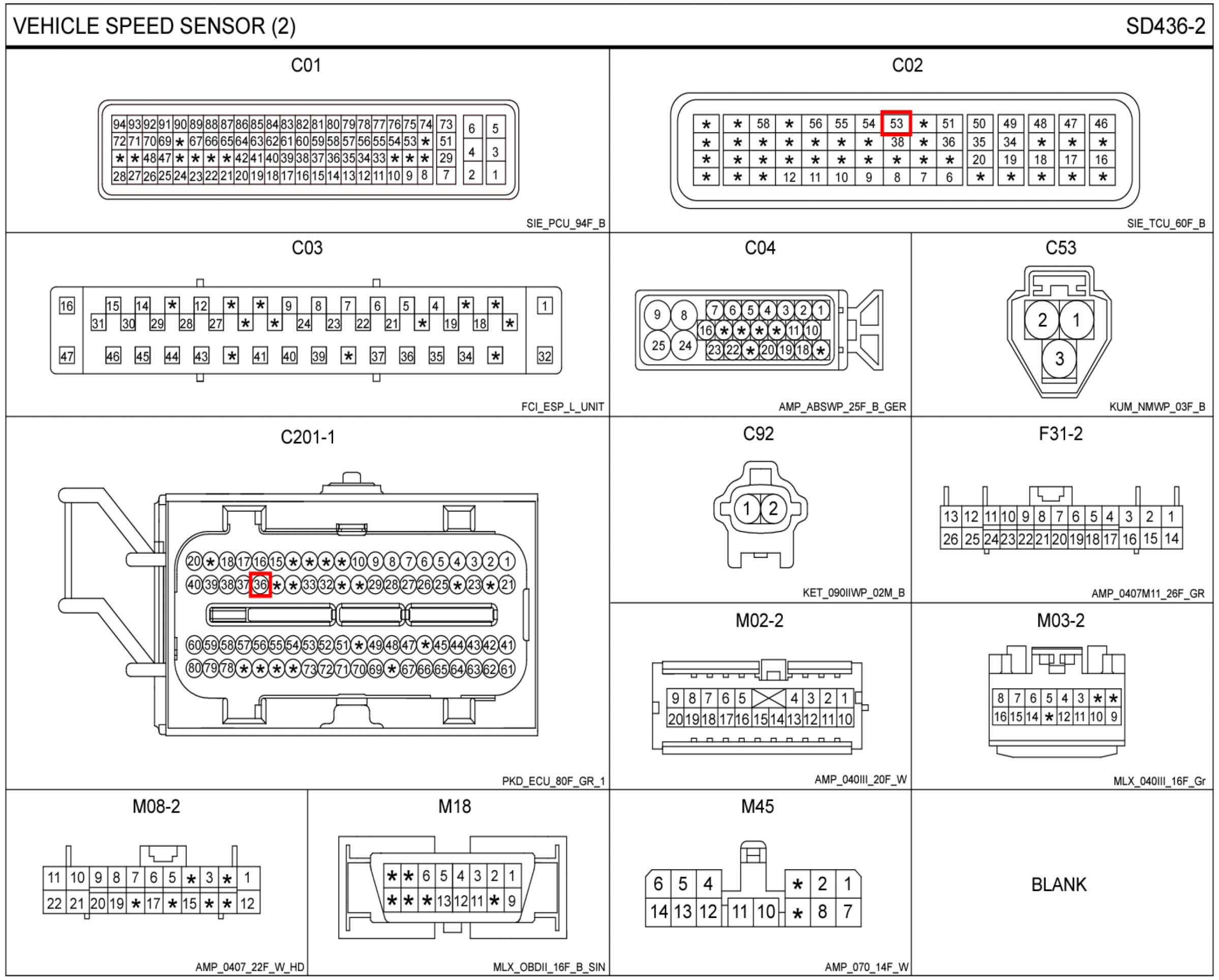 Vehicle Speed Sensor (Built on or After 7/18/2007) Connector Pin Outs: