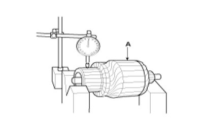 5. Measure the commutator (A) runout.