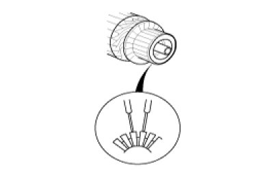 7. Check for continuity between the segments of the commutator. If an open circuit exists between any segments, replace the armature.