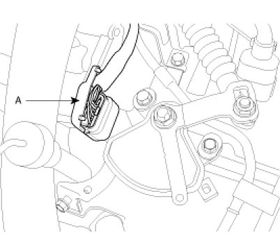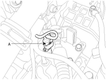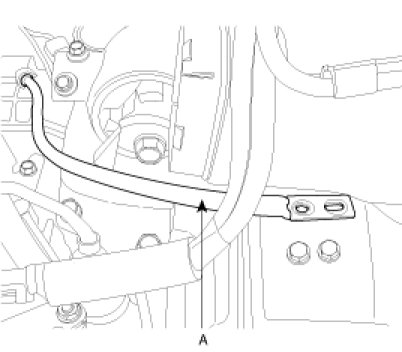 7. Remove the transaxle oil cooler hoses(A) releasing the clamps.