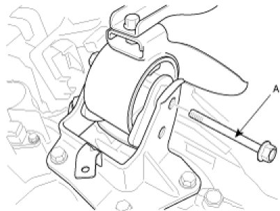 19. Lowering the vehicle down, remove the transaxle upper mounting bolts(A).