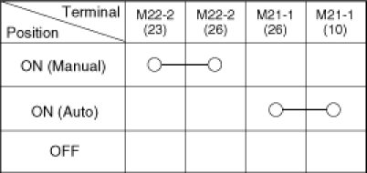 4. Using an ohmmeter, inspection the continuity between the terminals after removing to the switch connector.