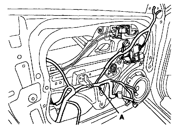 4. Loosen the door module mounting bolts, then remove the door module (A).
