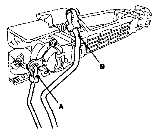 3. Disconnect the lock rod (A) and outside handle rod (B).
