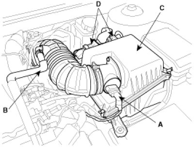 (3) Remove the intake air hose and air cleaner assembly(C).