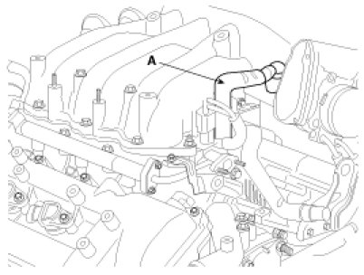 4. Remove the PCV(purge Control Valve) hose(A).