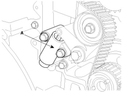 11. Remove the timing belt auto tensioner(A).