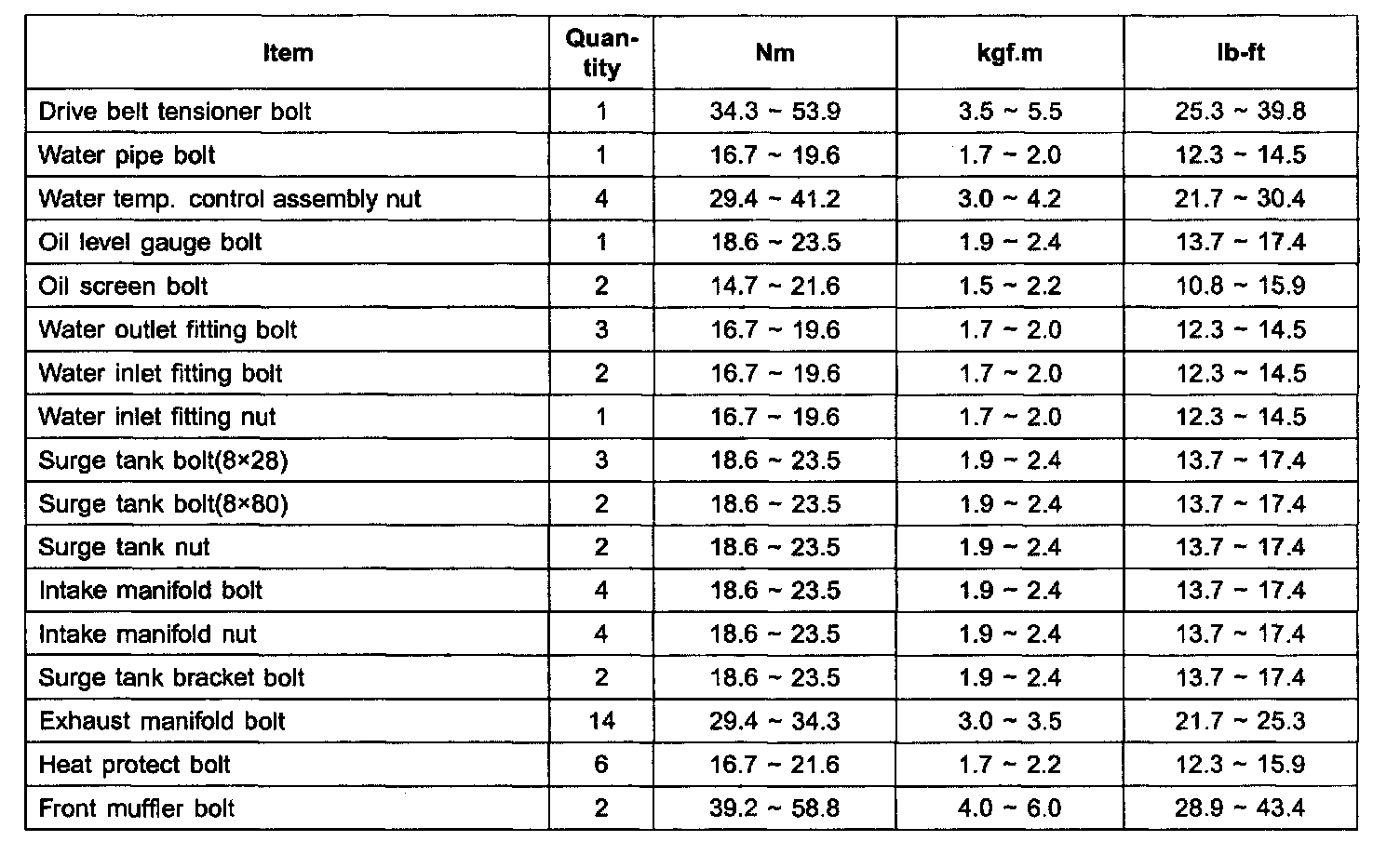 Cylinder Head Torque and Sequence