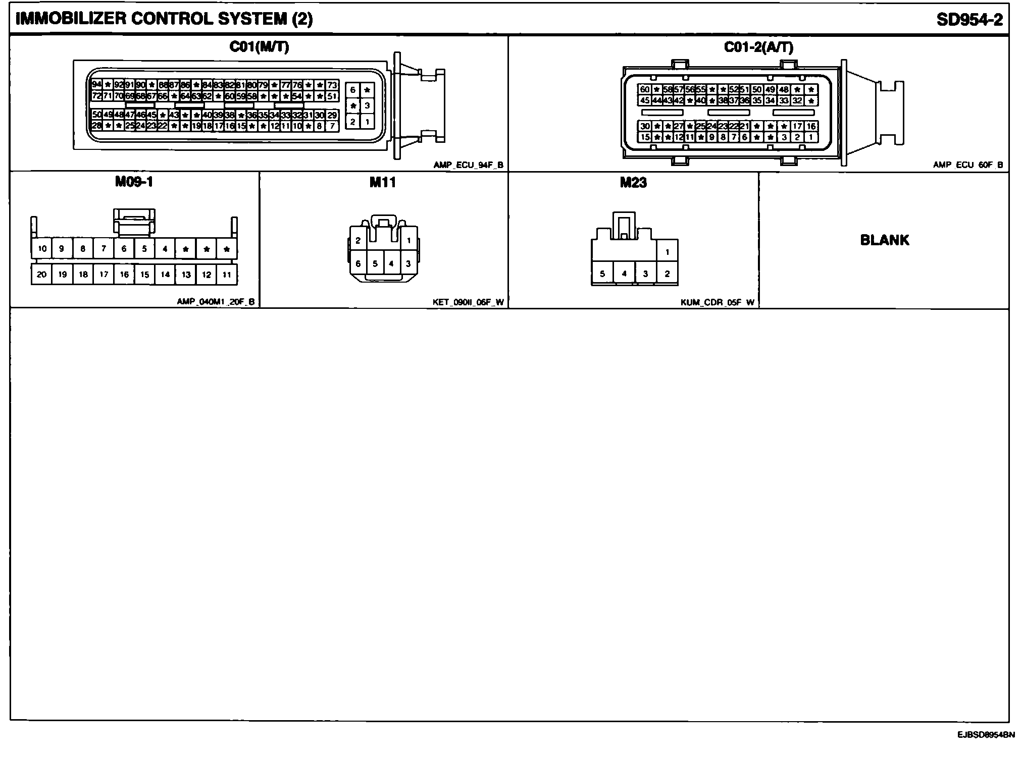 Immobilizer Control System Connector Pin Outs: