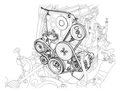 Rotate crankshaft in clockwise direction to set 1st piston on top dead center (TDC) and rotate crankshaft in counterclockwise to 90° then measure the belt tension in the middle of tension side span (in arrow direction of above illustration) by free vibration method.